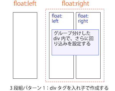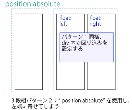 今日覚えてきた3段組の作り方のうちのうち、2つ紹介する。